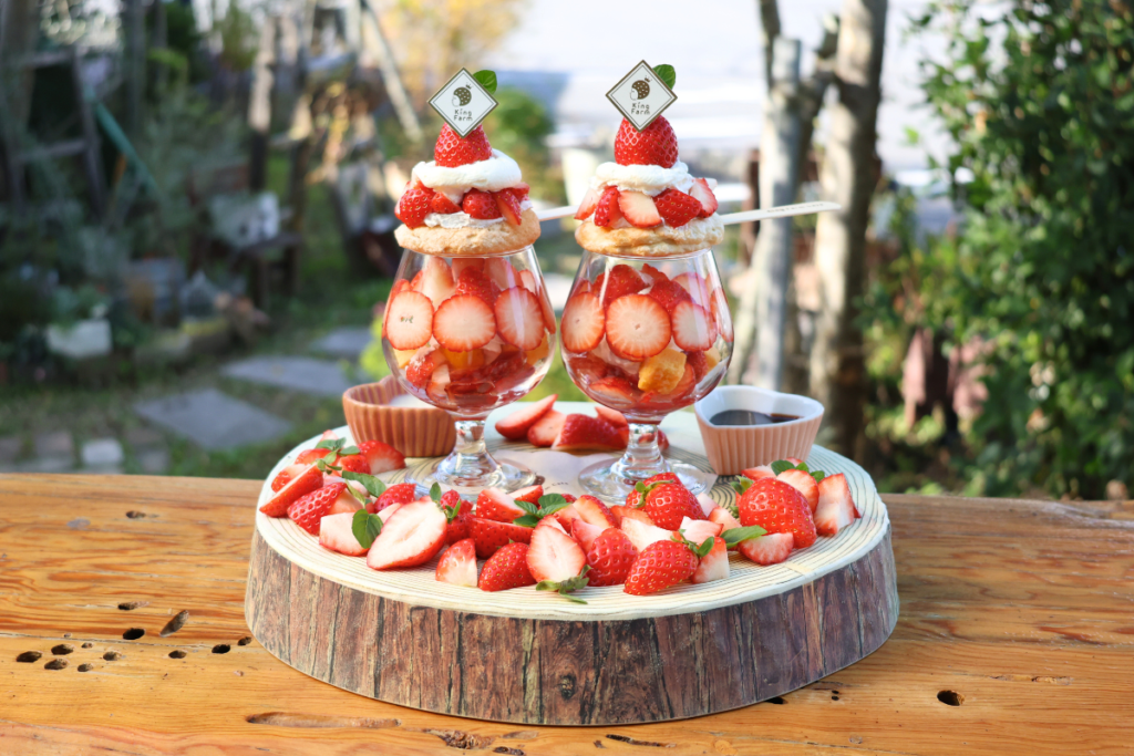 KingFarmの農園いちごを一年中楽しみたい方へ。甘酸っぱいいちごと濃厚ソフトクリームの相性抜群のthe定番いちごパフェです!