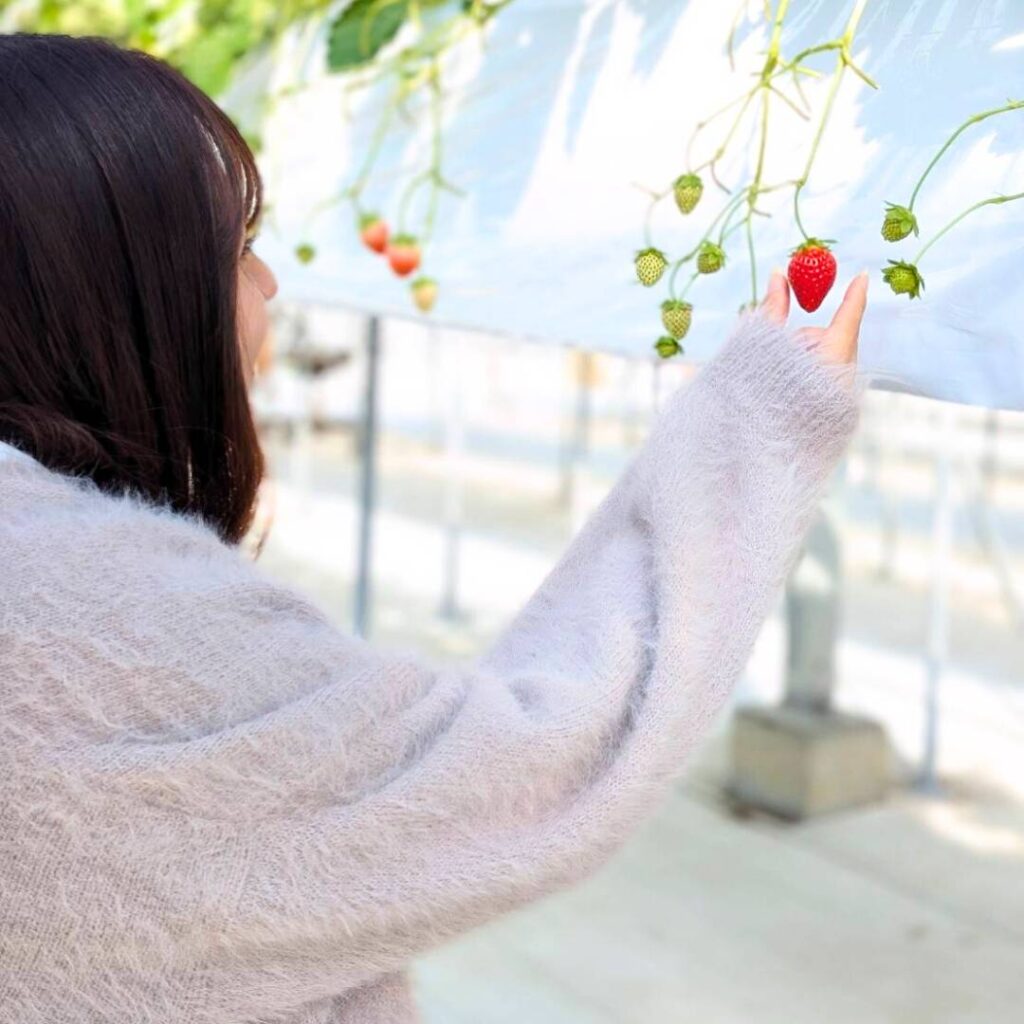 いちごの実は、おとなの腰の高さ程度なので、子供や車いすの方でも取りやすいよう工夫しています。また、栽培しているいちごの種類は固定していないので、毎年、違う種類のいちごを楽しんでいただけますよ♪