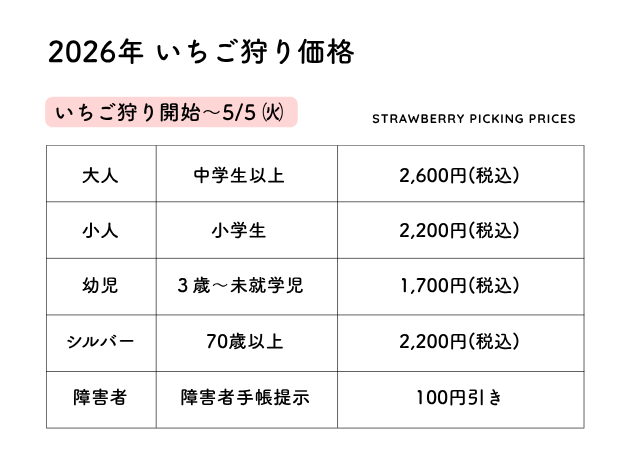 小さなお子様連れの方にも、ゆっくりといちごをお楽しみいただくため、ゆったりと60分間いちご狩りをお楽しみいただけるようにしております。